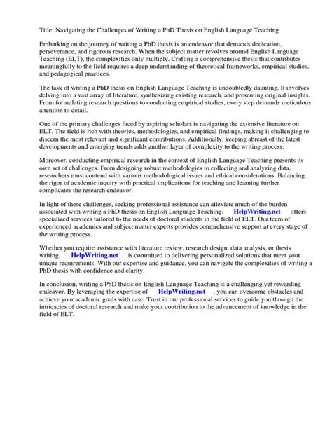 The Thesis Of English Language Teaching (ELT) argumentative texts 39 Mohammad rostampour The pragmatic analysis of carroll’s short novels within the framework of grice’s cooperative principles farideh pourgiv 40 Homa keshmiri The interpretation of conversational implicatures by Iranian and American students the impact of proficiency levelFile Size: KB EDUCATIONA CIENCE HEOR RACTICE. This review examines the doctoral research on English language teaching (ELT) between the years and in Turkey. The analysis focused on PhD dissertations covering various aspects of English language learning and teaching, such as teaching English as a foreign language, foreign language teacher education, and second language A handful of PhD thesis topics in English language teaching. A lot of students prefer to pursue their higher learning degree in subjects like English language teaching due to the interesting topics covered in the course as well as their real-world applications. However, before a person can claim to be an expert on the subject, they must submit a thesis paper that tests their knowledge regarding what they have