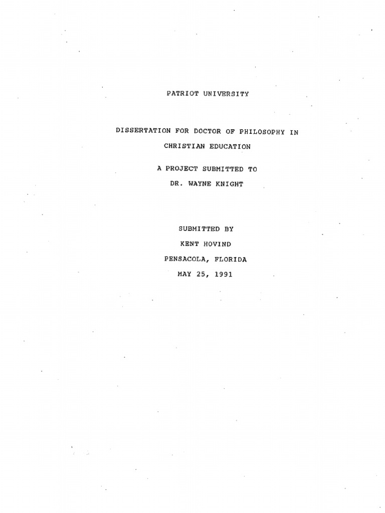 Contact us. Press inquiries. I live in Pensacola, Florida. I have been a high school science teacher since Kent Kovind Hovind is a well-known "young-earth" biblical creationist. As such the strength of his dissertation is of broad interest. According to our source, contrary to accepted practices in academia where doctoral dissertations are available to the public, phd dissertation assistance kent hovind. Hovind, along with his alma mater, Patriot Bible University, has consistently refused to allow his dissertation to be offered for public reprint or scholarly inquiry.